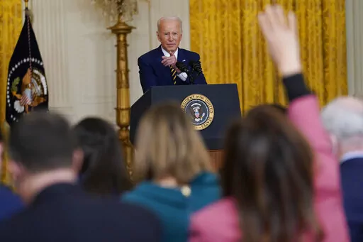It was Biden's seventh solo news conference as president. The ongoing threat from the coronavirus was evident in the setup of Wednesday's gathering: A limited number of reporters were allowed to attend and all had to have been tested for the virus and wear masks.