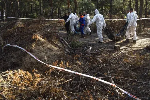 In the counteroffensive's wake, Ukrainian officials found hundreds of graves near the once-occupied city of Izium. Yevhenii Yenin, a deputy minister in Ukraine’s Internal Affairs Ministry, told a national telecast that officials found many bodies “with signs of violent death."