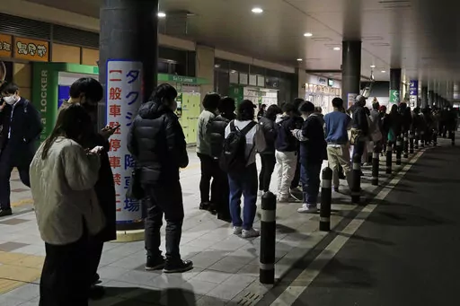 Many people formed long lines outside of major stations while waiting for trains to resume operation late Wednesday, but trains in Tokyo operated normally Thursday morning.