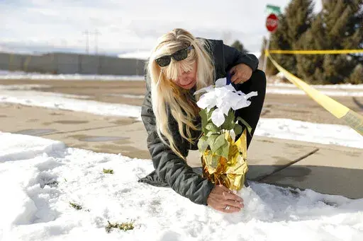 Sharon Huntsman of Cedar City came to the neighborhood with a bouquet of white flowers Thursday morning. She said the deaths had deeply rattled Iron County and cried as she propped up the bouquet in the snow at a makeshift memorial where neighbors left stuffed animals and flowers.