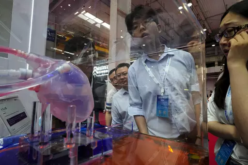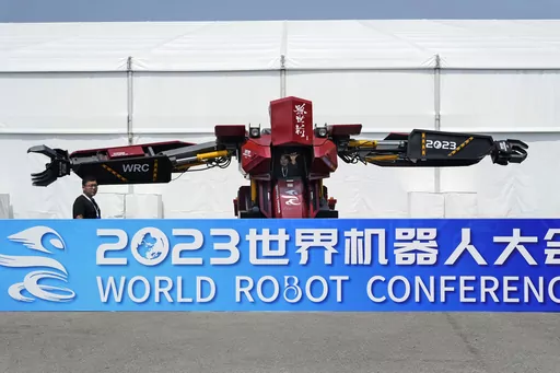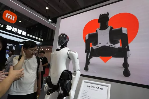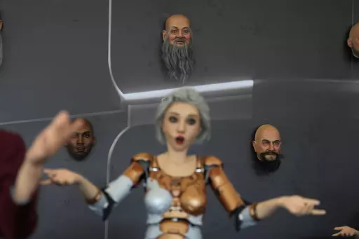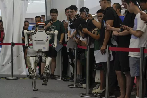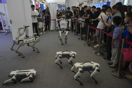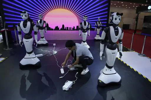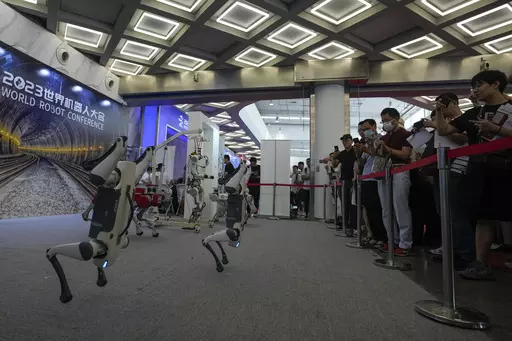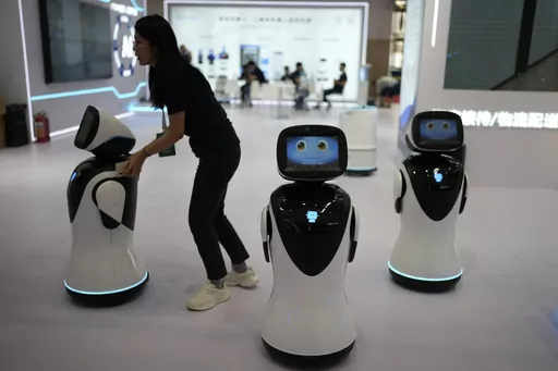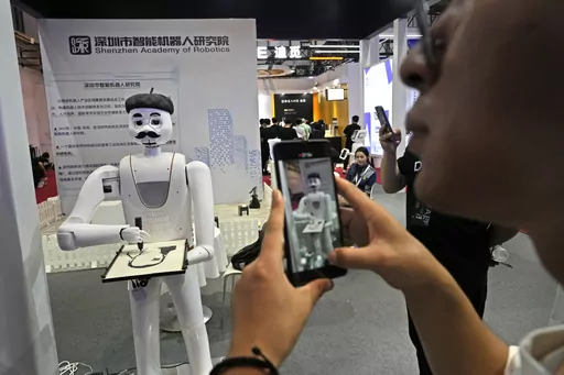 BEIJING (AP) — Winking, grimacing or nodding their heads, robots mimicked the expressions of visitors at a robot expo in Beijing.