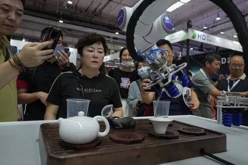 Elsewhere at the fair, robotic arms served Chinese tea, prepared ice cream cones, bounced ping pong balls and gave visitors back massages.