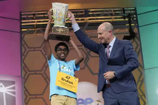 Bruhat is the second straight champion from the Tampa Bay area, and his victory means 29 of the last 35 spelling champs have been Indian American. His parents immigrated from the southern Indian state of Telangana, a region that's well-represented among the run of Indian American champions and contenders that began in 1999.