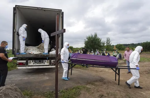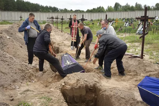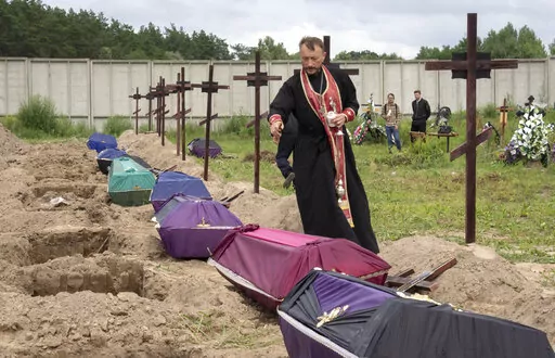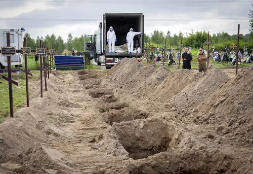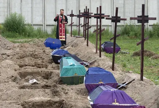 BUCHA, UKRAINE (AP) — With graves marked only with numbers, not names, burial services were held Thursday for 11 more unidentified bodies found in Bucha, the town outside the Ukrainian capital of Kyiv that saw hundreds of people slaughtered under Russian occupation early in the war.