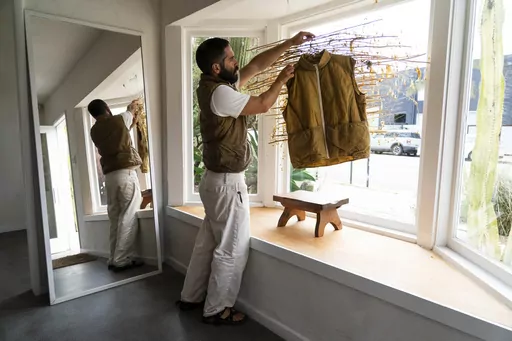 The Olderbrother store in Los Angeles is decorated with a huge panel of the plant's stalks, leaves and flowers that were woven on a loom by designer Cecilia Bordarampe. The material came from the first harvest when Kingery said his team initially harvested about 450 pounds (204 kilograms) to make the dye. They have continued, removing more than a 100 pounds (45 kilograms) a week ever since, mostly from public land in Los Angeles.
