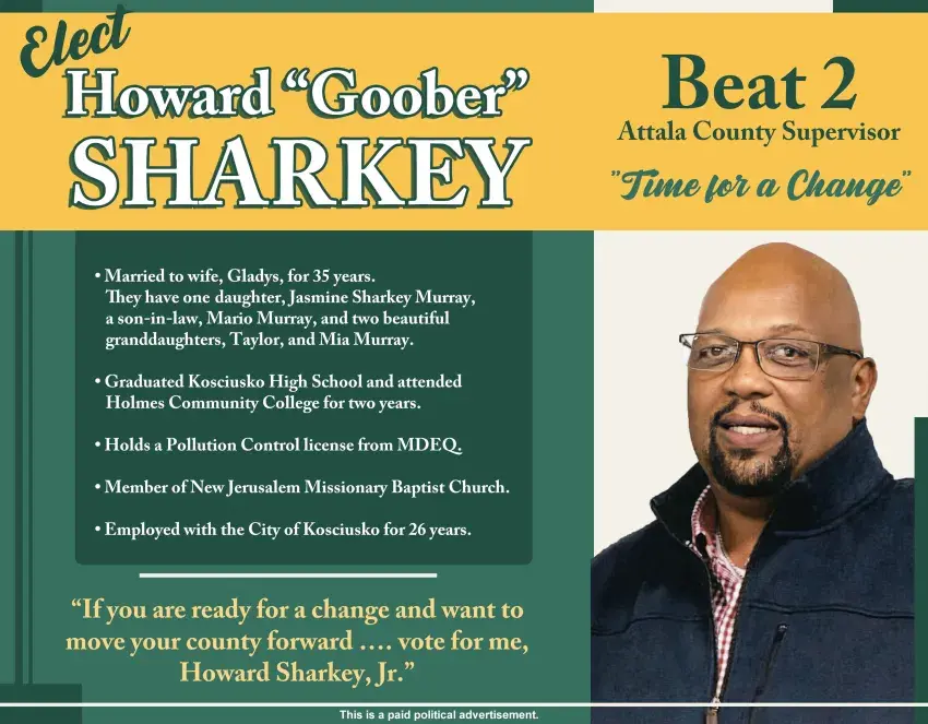 To the Citizens of District 2: My name is Howard Sharkey Jr. Most of you may know me by “Goober.” My wife, Gladys, and I have been married for 35 years, and we have one daughter, Jasmine Sharkey Murray, son-in-law, Mario Murray, and two beautiful granddaughters, Taylor, and Mia Murray.