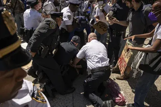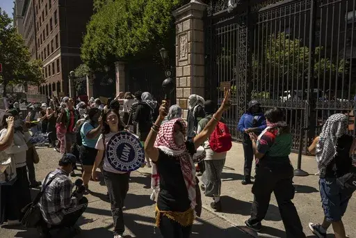 Later, two protesters outside the gates of Barnard College, the university’s nearby sister school, were taken into custody by police. The New York Police Department did not immediately have any details on the arrests.