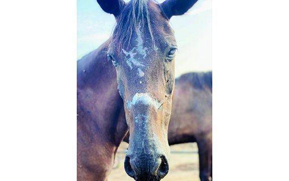 “You’ve got a saddle sitting on their backbone — there’s no fat up there,” Reynolds explained. “Couple that with sweat and they begin to open all down their spines. One of the mares has a spot in her withers, where the saddle sits on her neck, and those can be really problematic.”