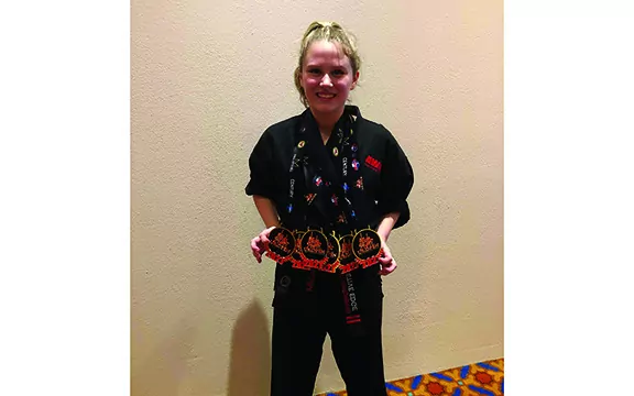 That love became something of an avocation, resulting in an age group championship at the International Sport Karate Association (ISKA) competition held over the Fourth of July weekend in Orlando, Florida. As a member of the Competitive Edge karate team, she won all six of her divisions.