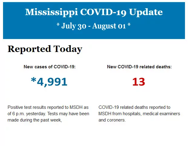 Listed below is the daily COVID-19 update for the state of Mississippi.
