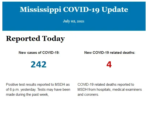 Listed below is the daily COVID-19 update for the state of Mississippi.