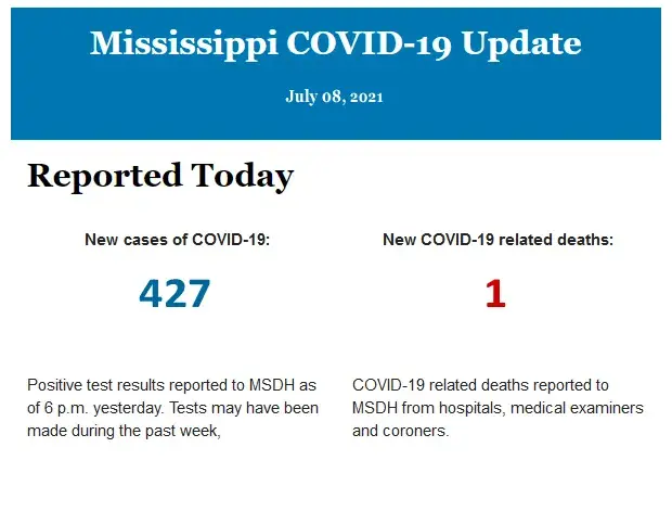 Listed below is the daily COVID-19 update for the state of Mississippi.