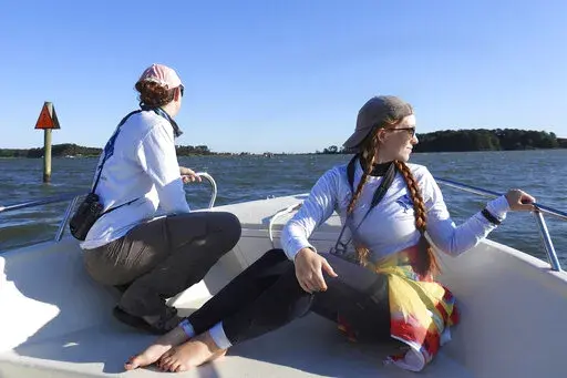 On mornings with light wind, the scientists set out in an 18-foot (5.5-meter) skiff to look for dolphins near where the Potomac River empties into the bay.