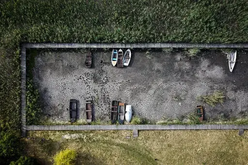In neighboring Hungary, wide parts of Lake Velence near Budapest have turned into patches of dried mud, beaching small boats. Aeration and water circulation equipment was installed to protect wildlife, but water quality has deteriorated. A weekend swimming ban was imposed at one beach.