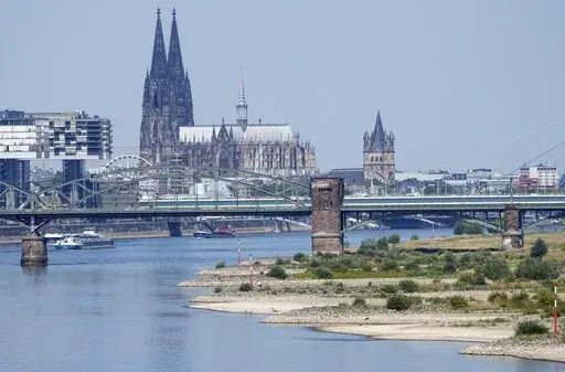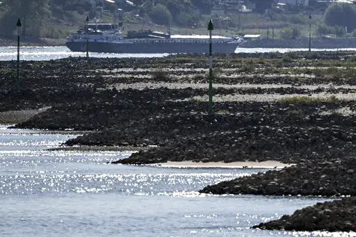 The Rhine, Germany's biggest waterway, is forecast to reach critically low levels in the coming days. Authorities say it could become difficult for many large ships to safely navigate the river at the city of Kaub, roughly midway between Koblenz and Mainz.