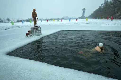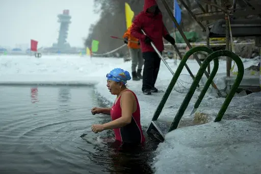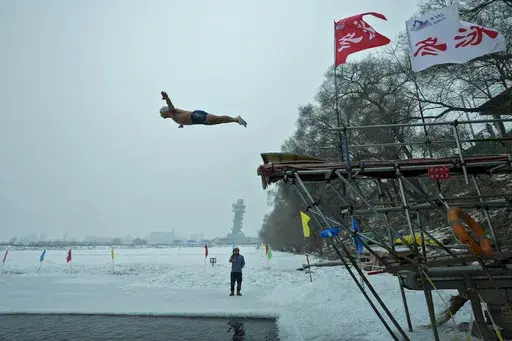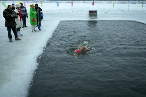 HARBIN, China (AP) — Even as the mercury dropped well below freezing, enthusiasm soared among about a dozen hardy swimmers during a daily ritual in northeast China’s “ice city” of Harbin.