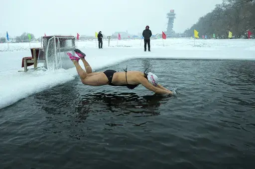 Chen Xia, who came from Zhejiang province about 1,700 kilometers (1,000 miles) to the south, dived into the river even though she had a cold. She said the winter waters in her home city are warmer than those in Harbin, where the water temperature hovered around the freezing mark.