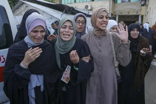 DEIR AL BALAH, Gaza Strip (AP) — Israeli airstrikes in central Gaza killed at least 14 people including children Sunday, Palestinian health officials said, while the bombing of a hospital in northern Gaza wounded a half-dozen patients.