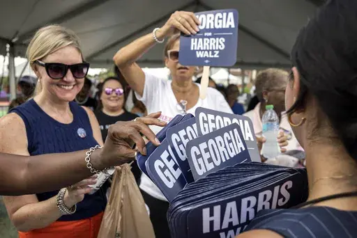 The rally was the end of a two-day bus tour in southeastern Georgia. Harris has another campaign blitz on Labor Day with Biden in Detroit and Pittsburgh with the election rapidly approaching. The first mail ballots get sent to voters in just two weeks.