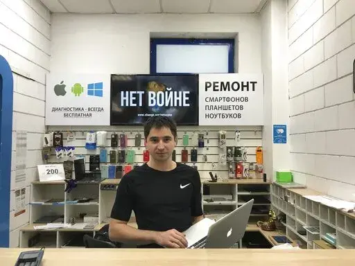 Marat Grachev, director of a shop that repairs Apple products in Moscow, similarly got in trouble when he displayed a link to an online petition titled, “No to war” on a screen in the shop. Many customers expressed support when they saw it, but one elderly man demanded it be taken down, threatening to report Grachev to the authorities.