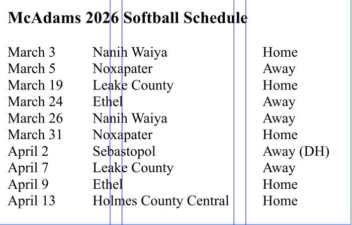 A young McAdams softball team with a new coach will open the 2026 season with a home game Tuesday against Region 1-5A opponent Nanih Waiya.