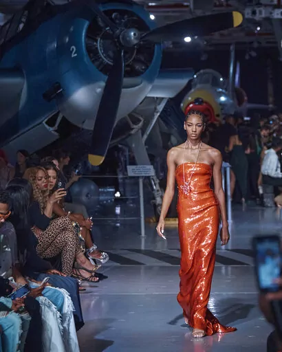 LaQuan Smith used the spectacular setting of a historic aircraft carrier for his fashion show exploring the female form.