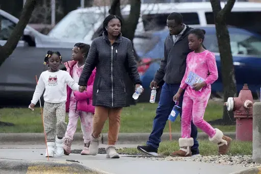 One family draped an adult-size coat around a young girl’s shoulder as they left the building to a parking lot still teeming with police and law enforcement vehicles.