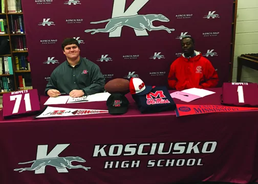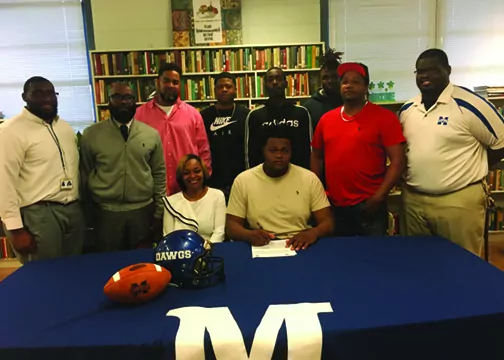 Percy Lewis will be playing for a defending national champion next year. The McAdams senior signed with Gulf Coast Community College last Wednesday, the first day of the February signing period, in a ceremony in the school library.