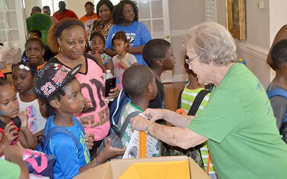 Four hundred backpacks — divided into preschool, elementary, middle and high school — filled with school supplies drew people into the event.