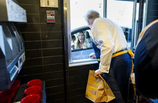 Trump staffed the fry station at a McDonald’s in suburban Philadelphia on Sunday before answering questions through the drive-thru window. The restaurant was closed to the public for the Republican nominee's visit.
