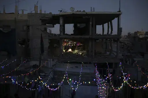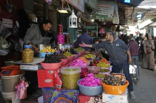 In Gaza's heavily damaged north, Associated Press video showed a bustling street market in Gaza City offering essential ingredients for Ramadan meals and breaking the daily fast, including olives, pickles, spices, dates and dried fruit. One stall displayed fresh vegetables, while a nearby kiosk sold festive Ramadan decorations.