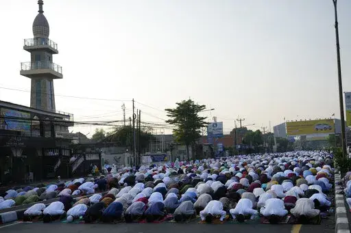 At the largest mosque in Southeast Asia, tens of thousands of Muslims attended prayers Monday morning. The Istiqlal Grand Mosque in Indonesia's capital Jakarta was shuttered when Islam’s holiest period coincided with the start of the coronavirus pandemic in 2020 and was closed to communal prayers last year.