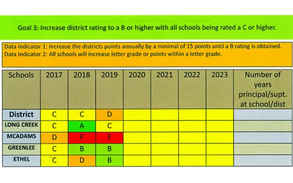 “The board takes the overview of the entire district, then the board holds me accountable for attaining these goals. Then I set the goals at the school level and I hold them accountable, and they hold teachers accountable,” he told the board. “This is why this is so very important, this goal-setting.”