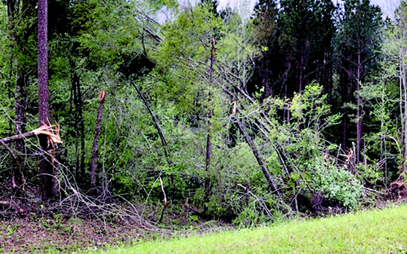 The first storm cell, which reportedly included a tornado touching down just south of Goodman, took out trees in the area of County Road 3102. That cell toppled a tree through the bedroom ceiling of an unoccupied mobile home on County Road 3111, according to Danny Townsend of Attala County Emergency Management. It was the only residential damage reported thus far.