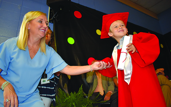 The school held it first ever Pre-K graduation ceremony, which was so packed, some family members had to peer in the cafeteria windows to watch the ceremonies.
