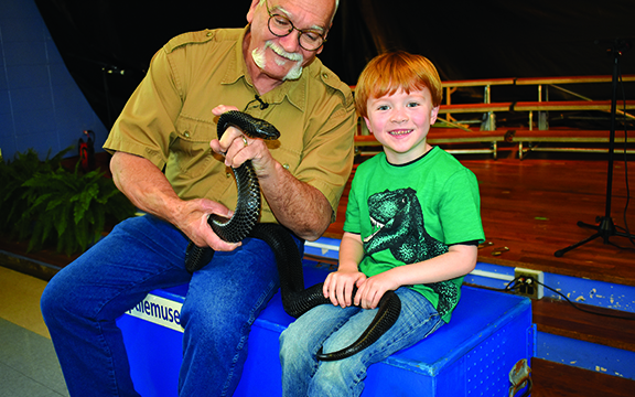 During this visit, he showed the children a milk snake, a corn snake, a king snake and a chicken snake. He provided interesting facts about each, pointing out coloring, skin patterns and habitats.