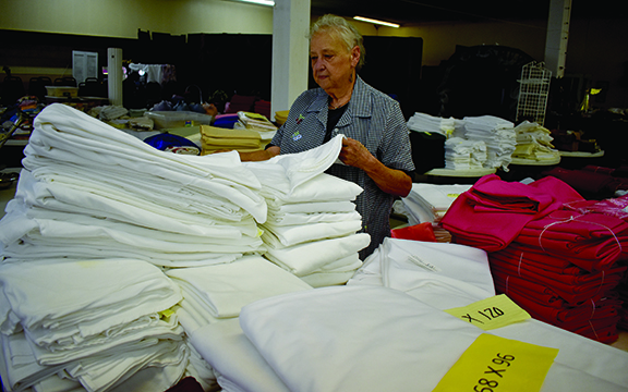 hundreds of tablecloths, napkins and decorative items used in her business through the years. All are now for sale. The kitchen equipment, she said, was all bought by one individual earlier in her business-closing process.