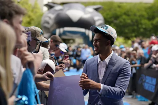 The team welcomed Young and his family to Charlotte on Friday with a pep rally outside of Bank of America Stadium's front gate. Young walked through a line shaking hands with fans as hip-hop music blared, and he banged the team's “Keep Pounding” drum at the end of the procession, signaling the start of a new era in Carolina.