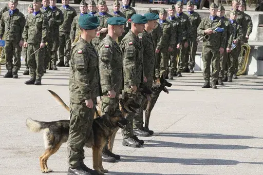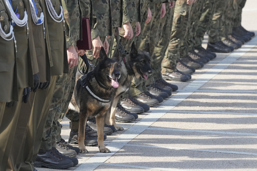 NOWY DWOR MAZOWIECKI, Poland (AP) — The new privates received their ranks amid military pomp in a town near Warsaw where a Napoleonic fortress attests to a long military history. The group was made up of a German shepherd, a Dutch shepherd and two Belgian Malinois.