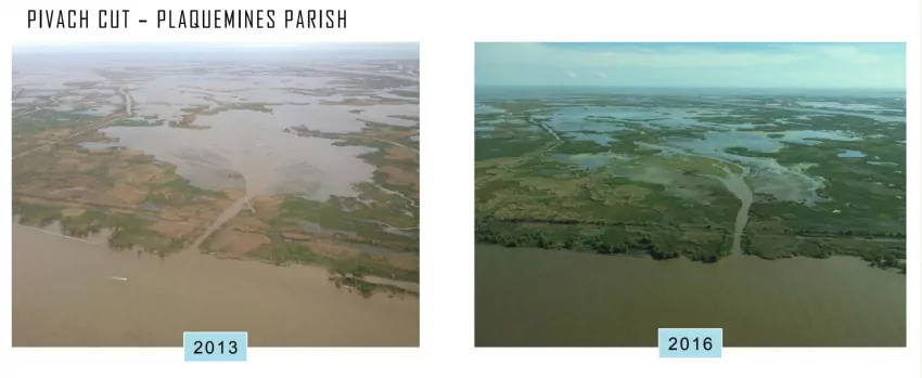 The project is one of those in the 2017 master plan of the CPRA that would divert flow from the Mississippi River and divert into marshes in the hopes that the river will deposit silt and allow the marshes to heal after years of erosion, saltwater intrusion and other factors that lead to a football field-sized chunk of southeastern Louisiana being lost every 100 minutes.