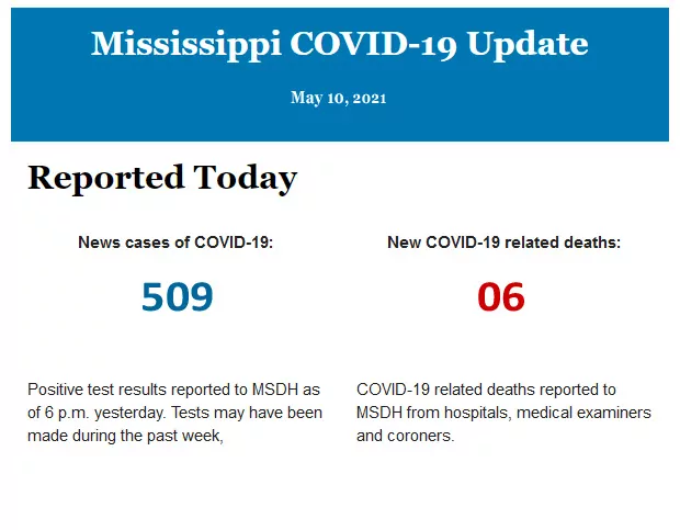 Listed below is the daily COVID-19 update for the state of Mississippi.