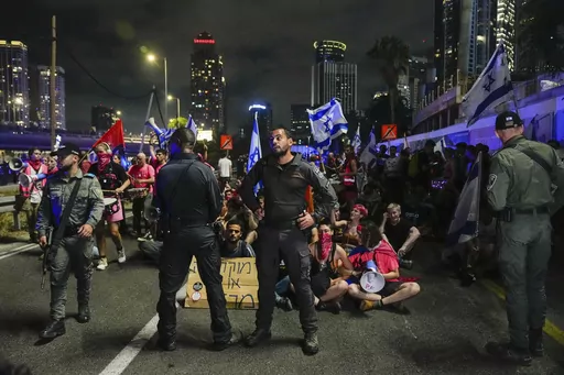 Some 150,000 people thronged central Tel Aviv, with large rallies in Jerusalem and other major cities. Late Saturday, dozens of people attempted to block Tel Aviv's main highway, but they were quickly cleared away by police. Scuffles broke out, and police sprayed a water cannon at the crowd.