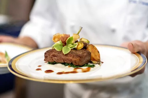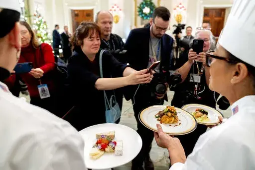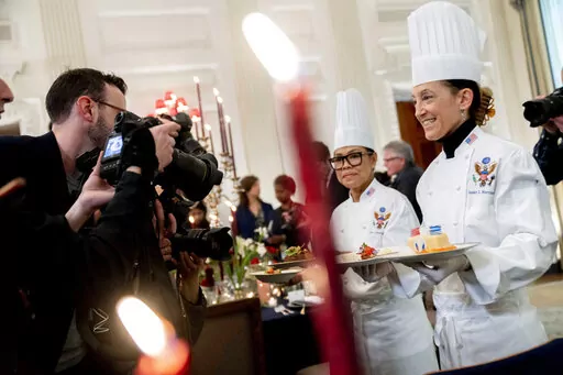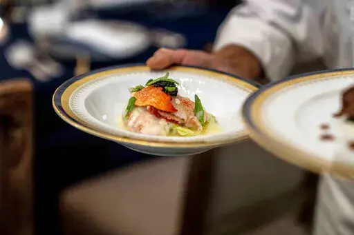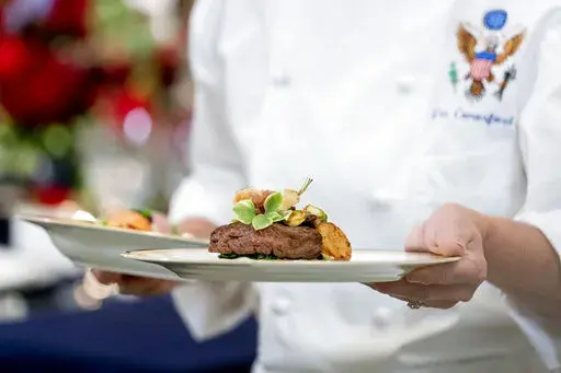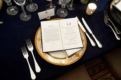 WASHINGTON (AP) — Butter-poached Maine lobster, beef with shallot marmalade and an American cheese trio will be served when French President Emmanuel Macron takes his seat Thursday as the guest of honor at a red-white-and-blue themed White House state dinner, the first for President Joe Biden.