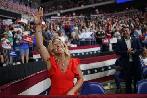 WASHINGTON (AP) — Marjorie Taylor Greene took her seat directly behind Republican House leader Kevin McCarthy, a proximity to power for the firebrand congresswoman that did not go unnoticed, as he unveiled the House GOP's midterm election agenda in Pennsylvania.