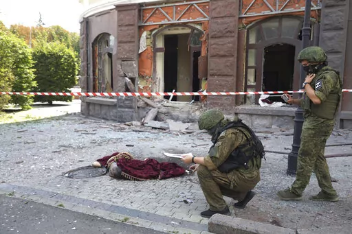 In the city of Donetsk, Russian-backed separatist authorities accused Ukrainian forces of shelling the central part of the city Thursday. The area hit was near a theater where a farewell ceremony for a prominent separatist officer killed a few days ago was being held. Donetsk Mayor Alexei Kulemzin said six people were killed.