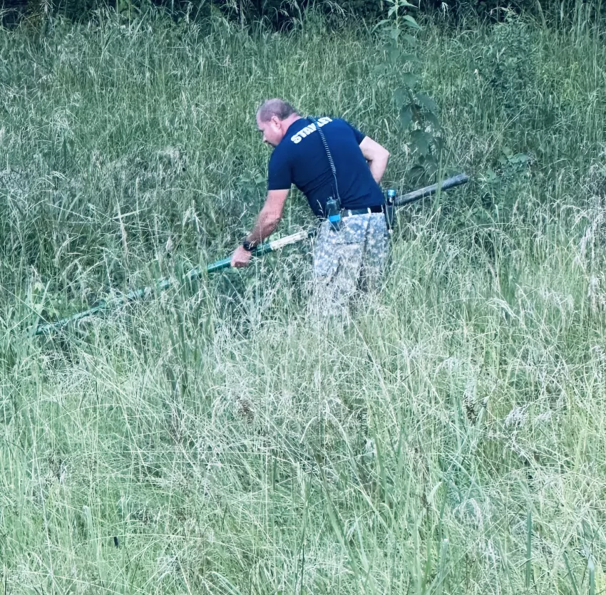 Investigator Greg Collins of the Kosciusko Police Department got a search party together, which included a scent hound. Brad Stanley said the hound only picked up a scent once, which was near a ditch behind Kangaroo Crossing on Veterans Memorial Drive.