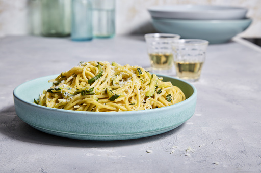 Pasta with Pecorino-Zucchini Sauce and Basil