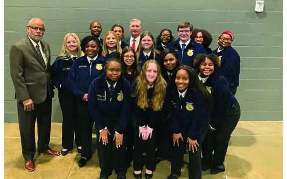 Pictured are: Representative Kenneth Walker, Aubri Wollfarth, Shontae Coats, FFA Advisor Kenneth Georgia, Alex Swilley, Secretary Makayla Riley, Sentinel Marcus Ball, Student Advisor Katie Cockrell, MS ICEV Consultant Lonnie Johnson, Haylei Shaw, Dana Hill, Asiana Collins, Vice President Jailyn Riley, President Devin Granger, Makayla Kast, La’joclyn Seawood, and Historian Makaila Brock.
