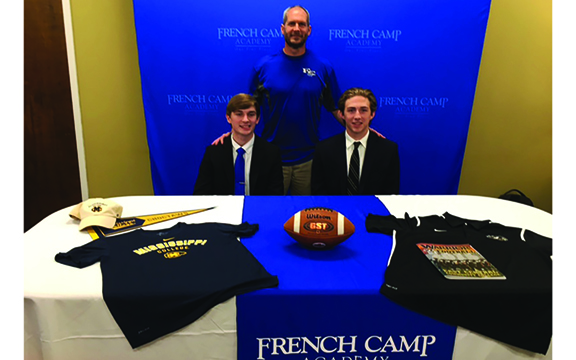 It is on to the next level for French Camp football players Holman Edwards and Bradley McGlothin after a signing ceremony for the two seniors at the school.