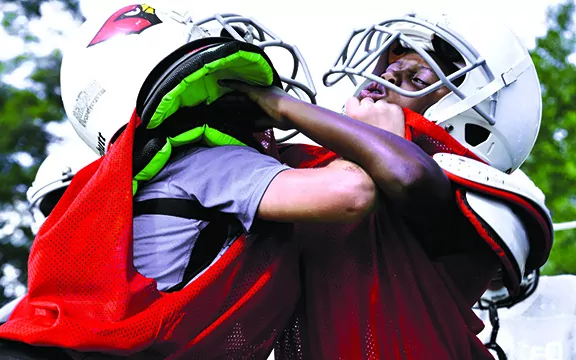 The emphasis on character building, however, does not make Cardinals players exempt from early Saturday morning practices, running laps or the drain of working out in pads beneath a steamy July sun.